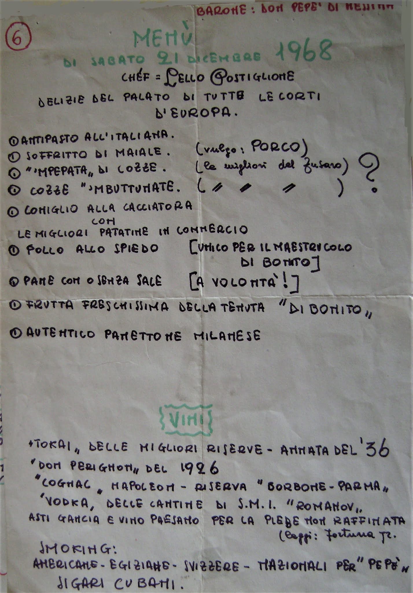 Memorabile un cenone del 21 dicembre 1968